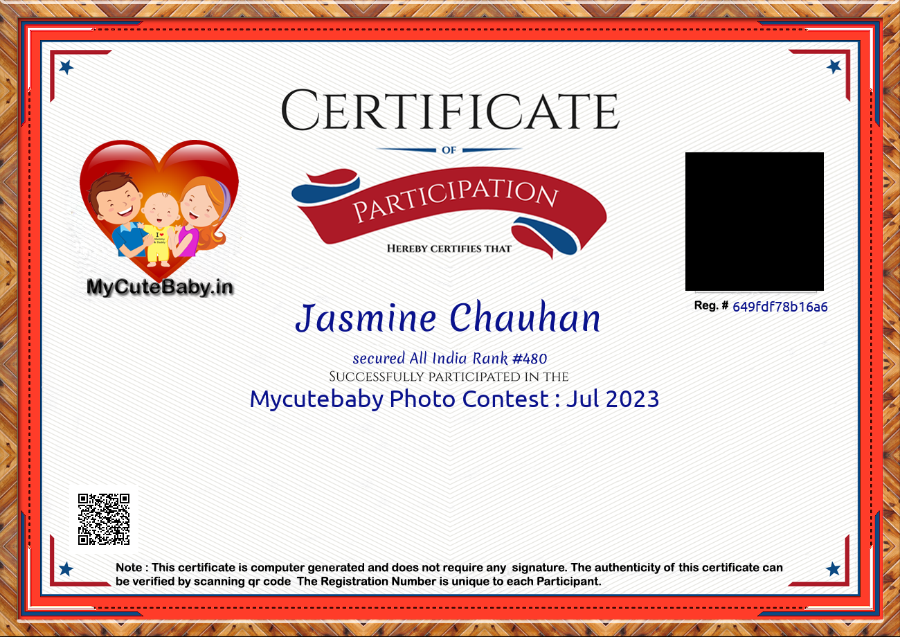 Participation certificate for all the participants whose mycutebaby votes are more than 1000.