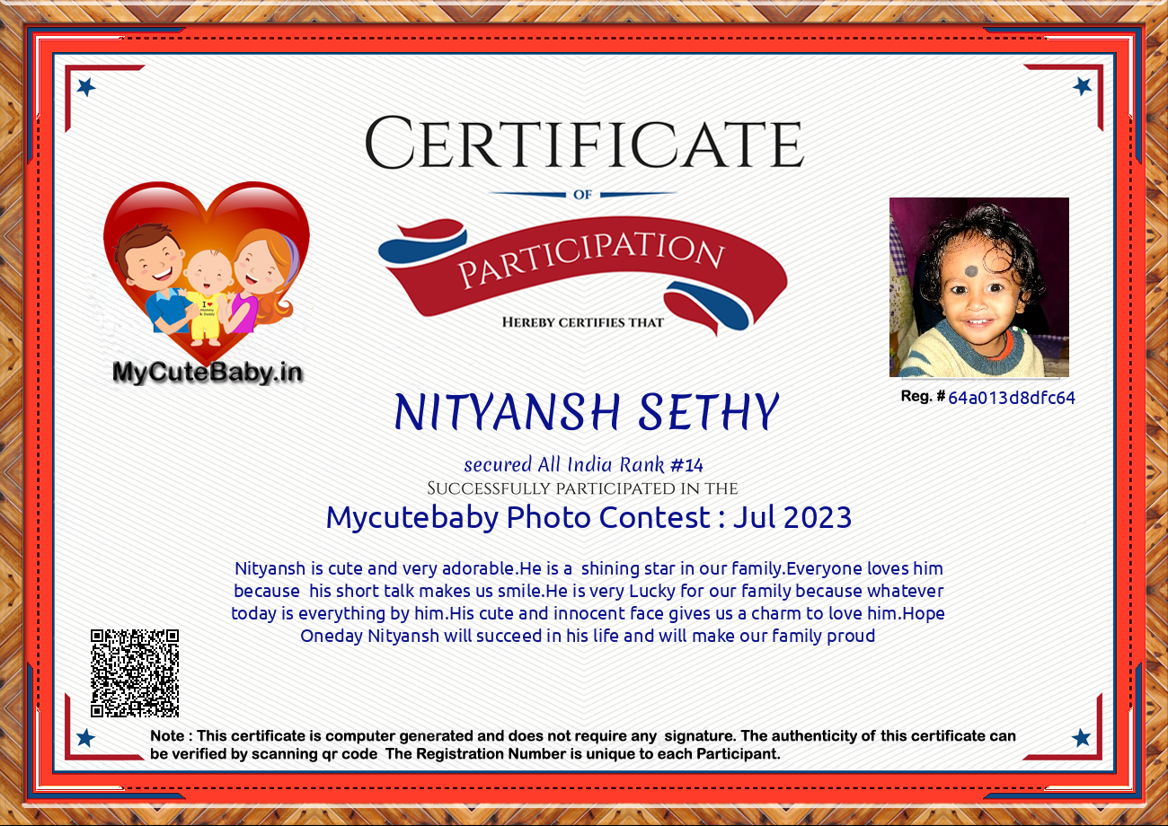 Participation certificate for all the participants whose mycutebaby votes are more than 1000.