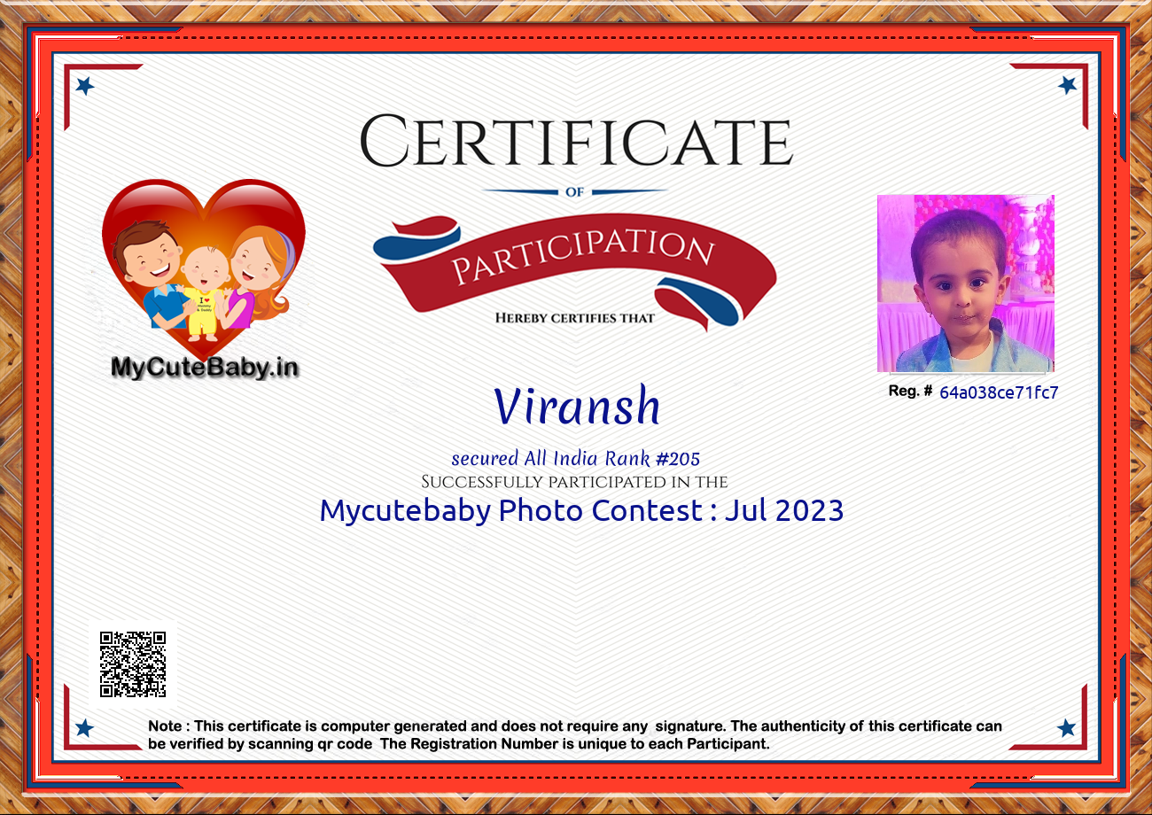 Participation certificate for all the participants whose mycutebaby votes are more than 1000.