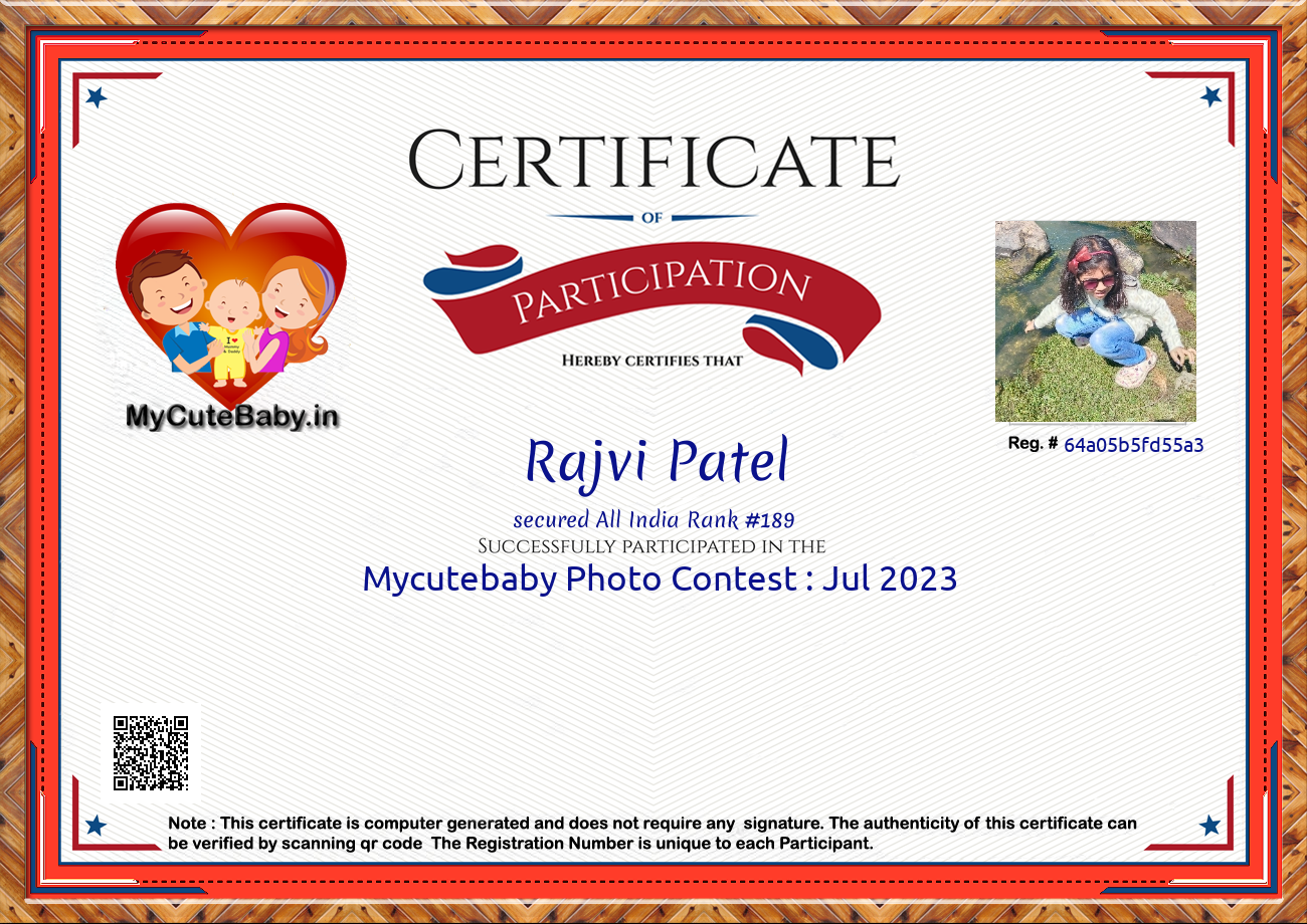 Participation certificate for all the participants whose mycutebaby votes are more than 1000.