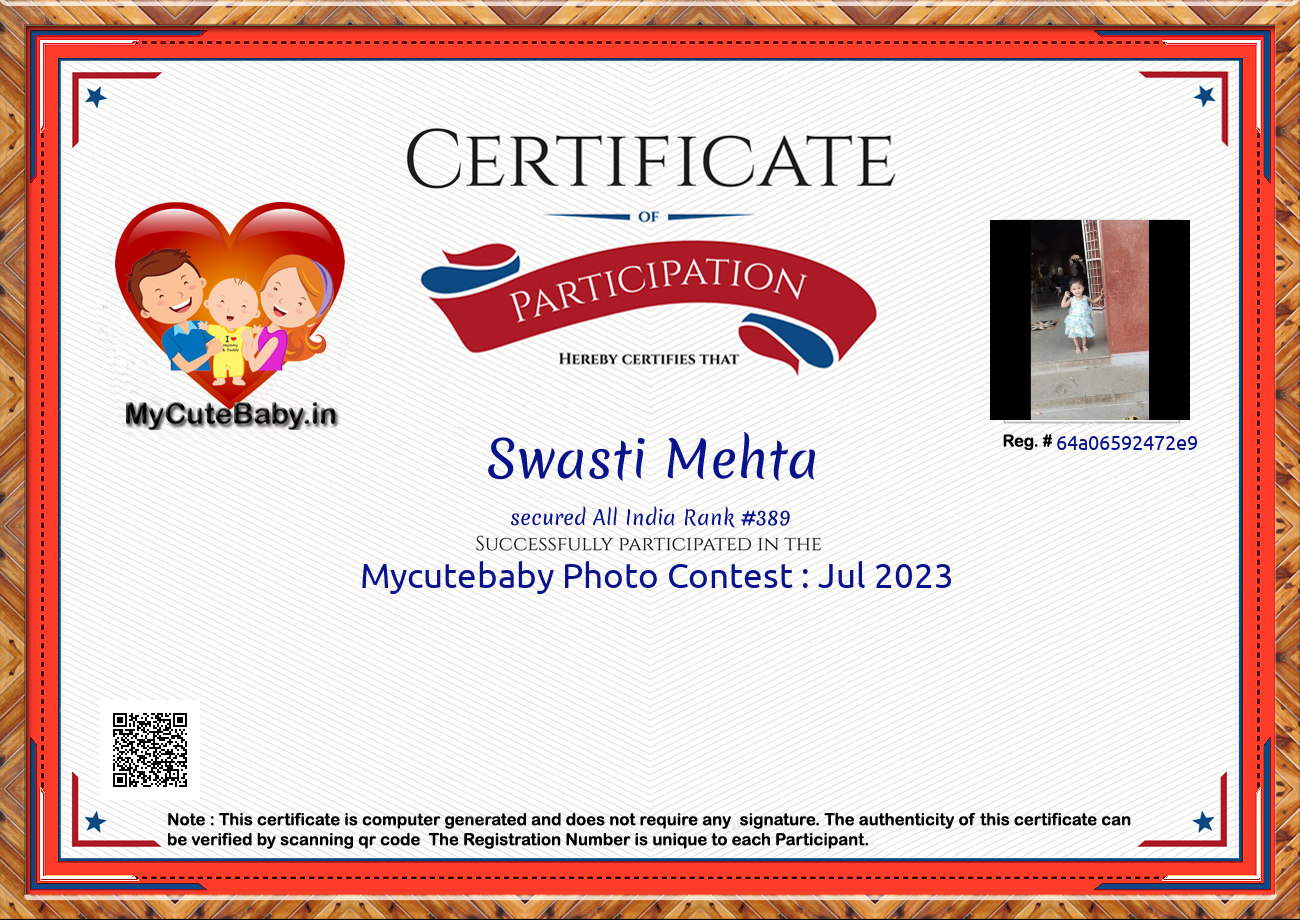 Participation certificate for all the participants whose mycutebaby votes are more than 1000.