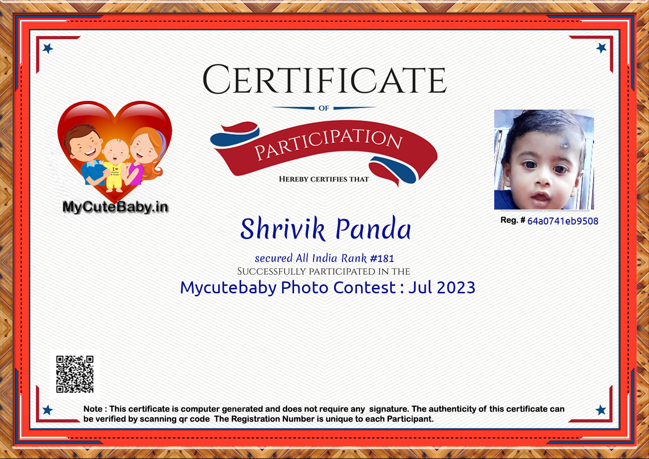 Participation certificate for all the participants whose mycutebaby votes are more than 1000.