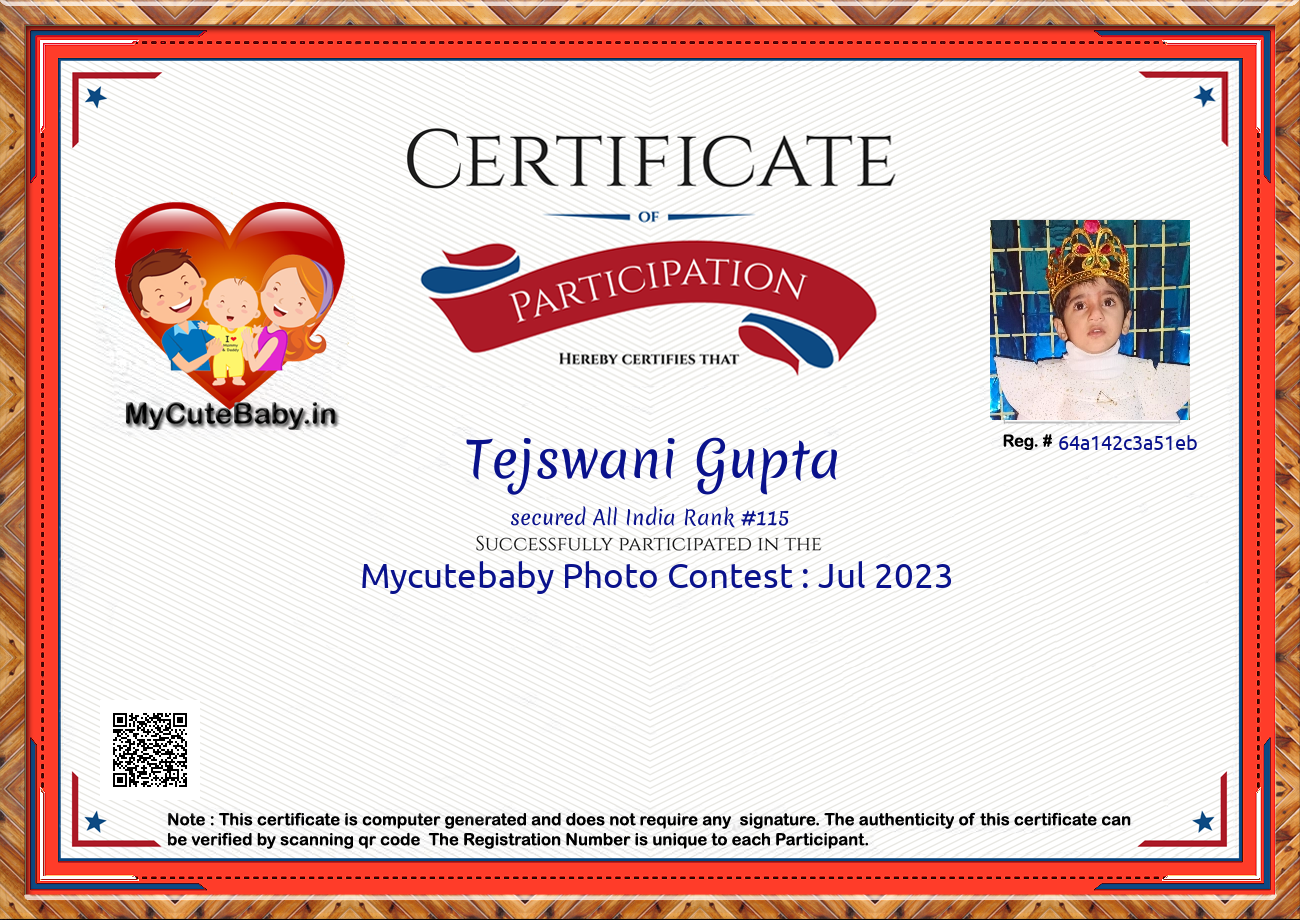 Participation certificate for all the participants whose mycutebaby votes are more than 1000.