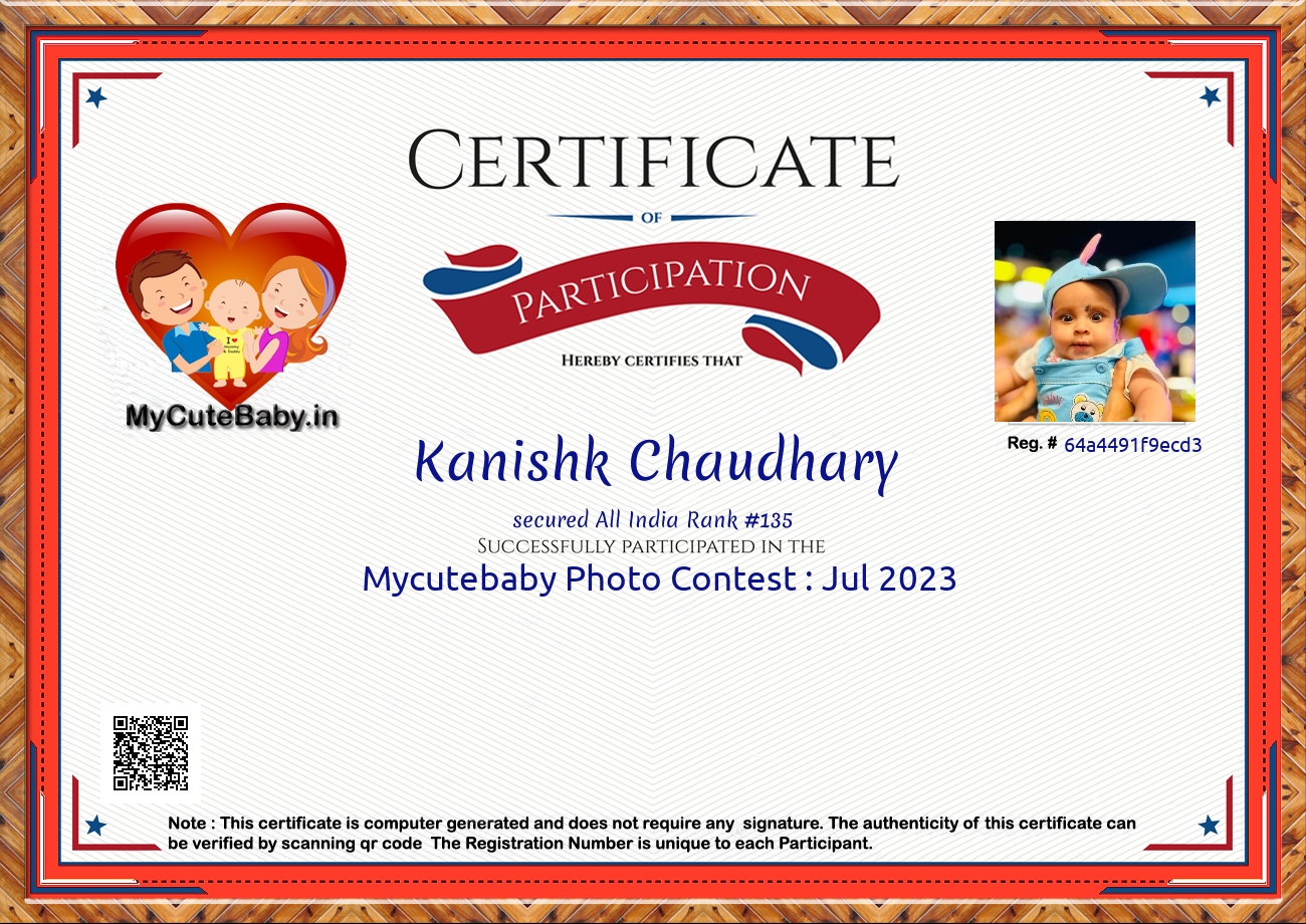 Participation certificate for all the participants whose mycutebaby votes are more than 1000.