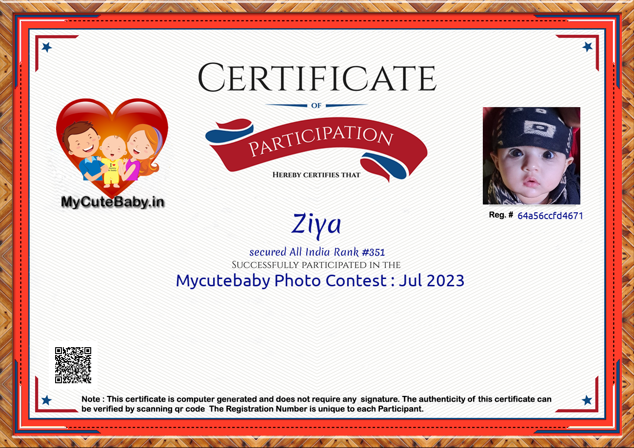 Participation certificate for all the participants whose mycutebaby votes are more than 1000.