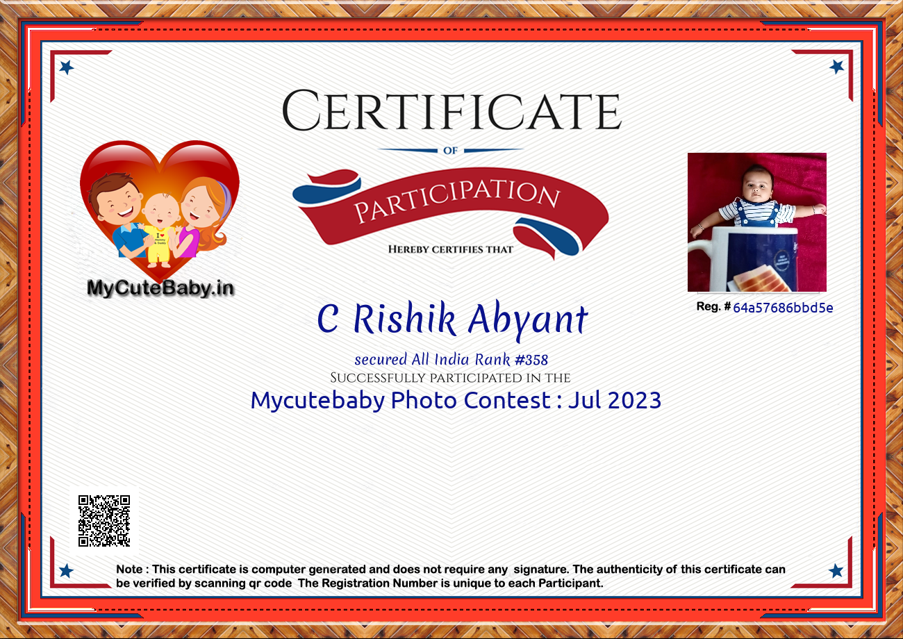 Participation certificate for all the participants whose mycutebaby votes are more than 1000.