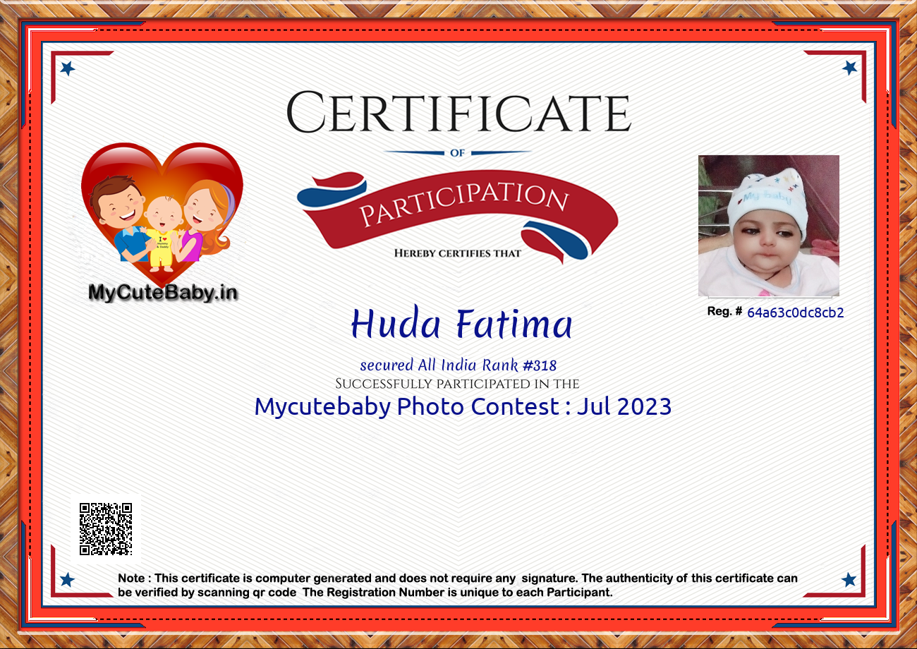 Participation certificate for all the participants whose mycutebaby votes are more than 1000.