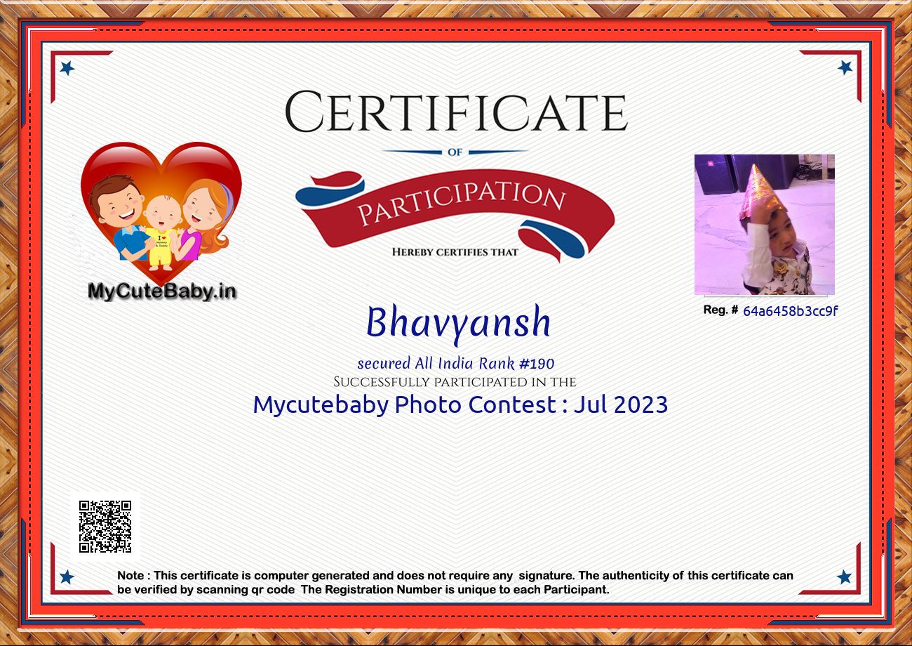 Participation certificate for all the participants whose mycutebaby votes are more than 1000.