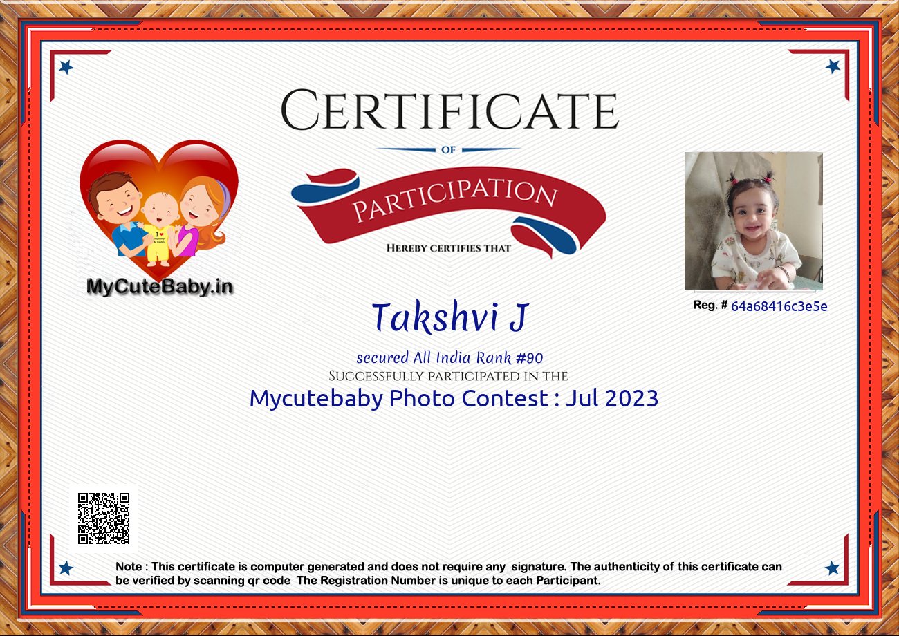 Participation certificate for all the participants whose mycutebaby votes are more than 1000.
