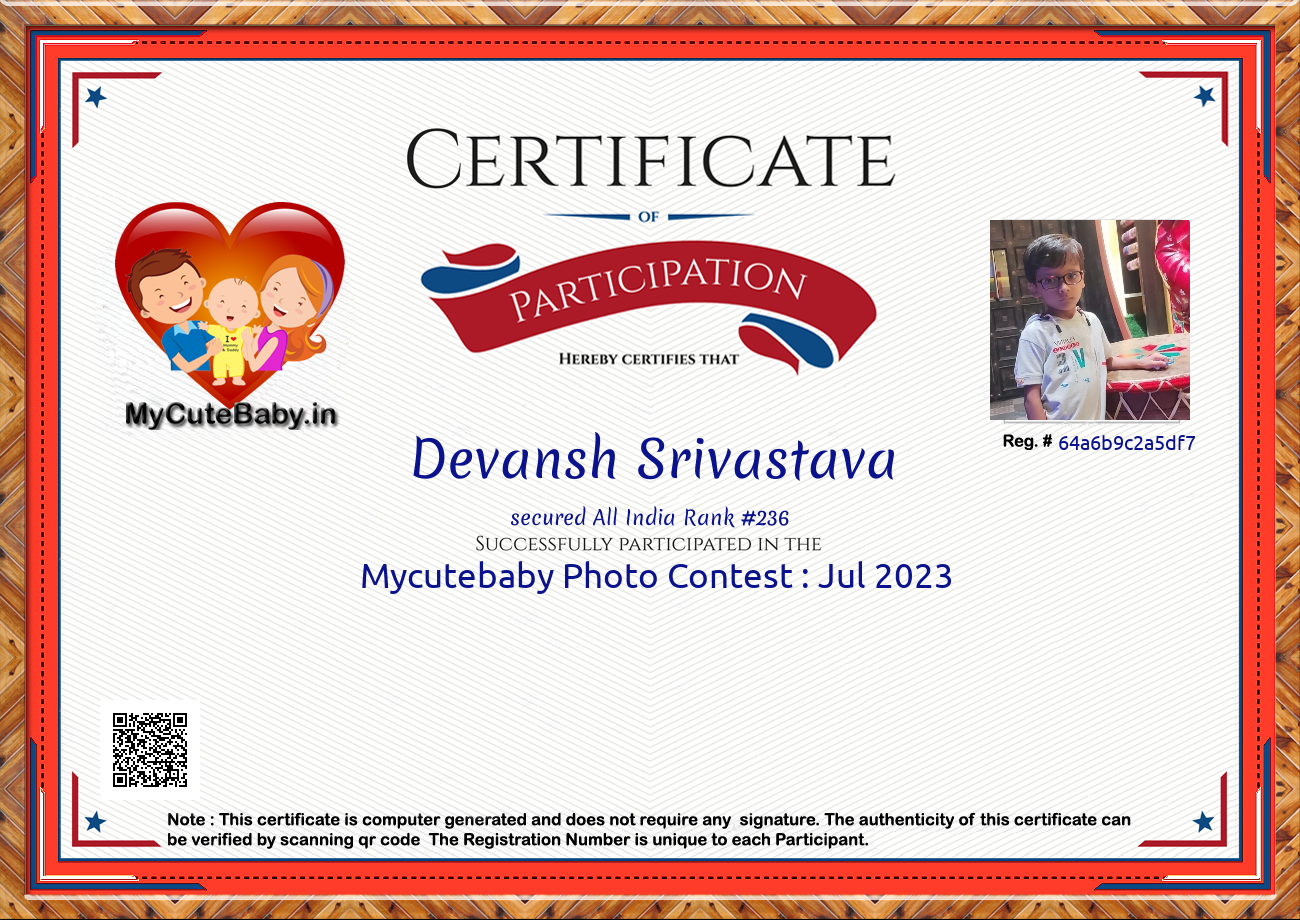Participation certificate for all the participants whose mycutebaby votes are more than 1000.