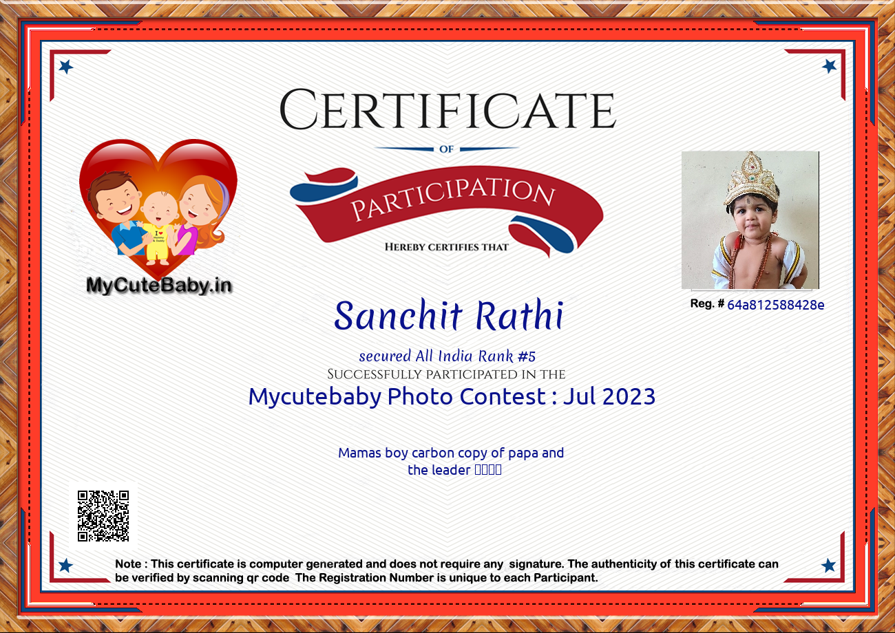 Participation certificate for all the participants whose mycutebaby votes are more than 1000.