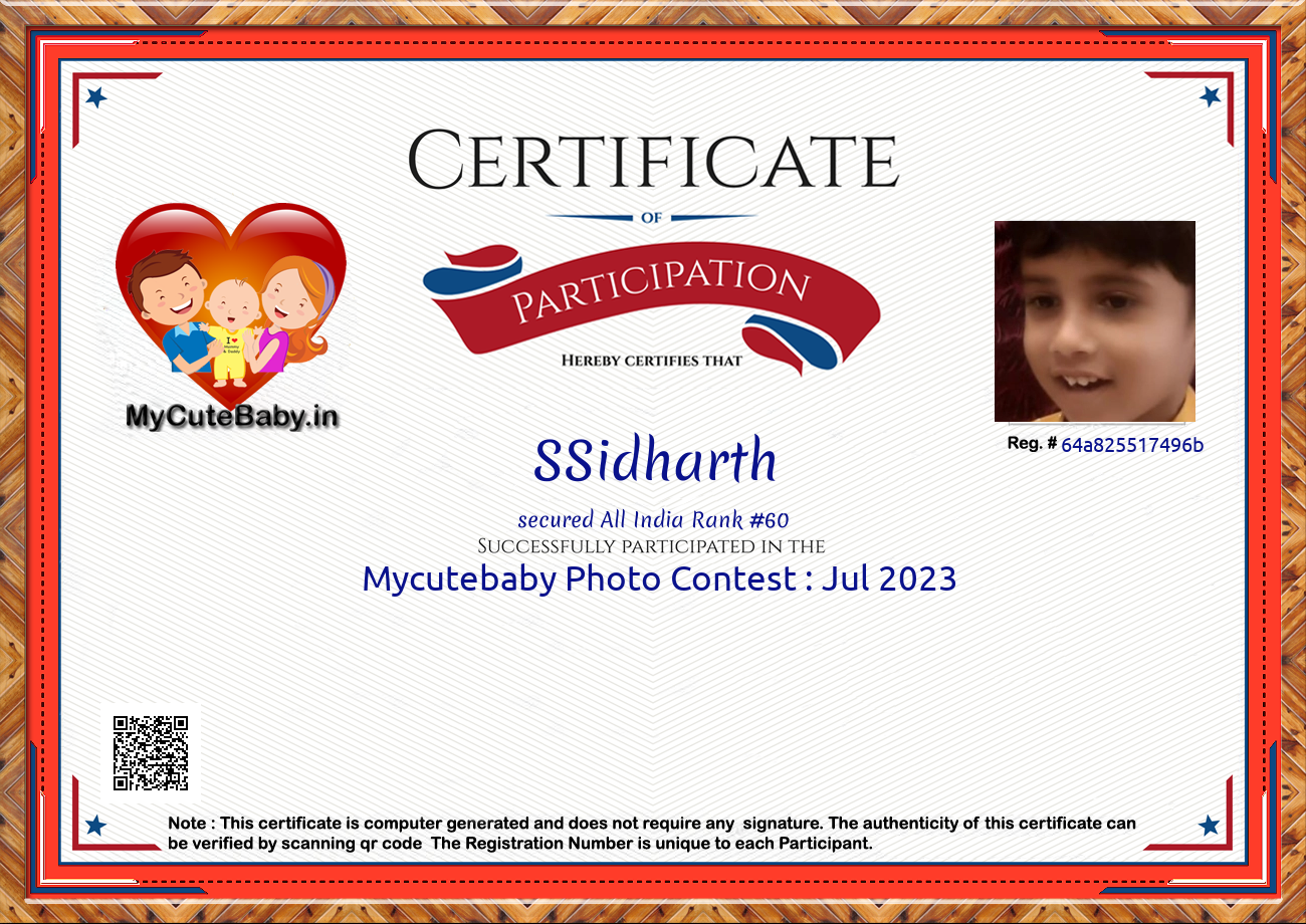 Participation certificate for all the participants whose mycutebaby votes are more than 1000.