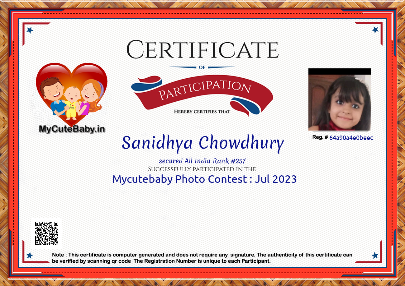 Participation certificate for all the participants whose mycutebaby votes are more than 1000.