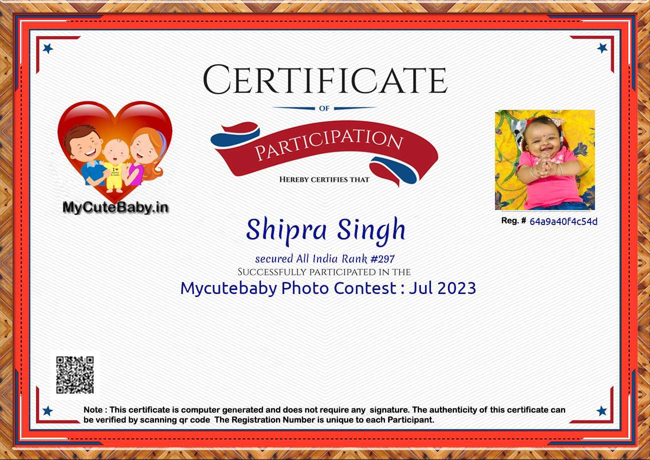 Participation certificate for all the participants whose mycutebaby votes are more than 1000.