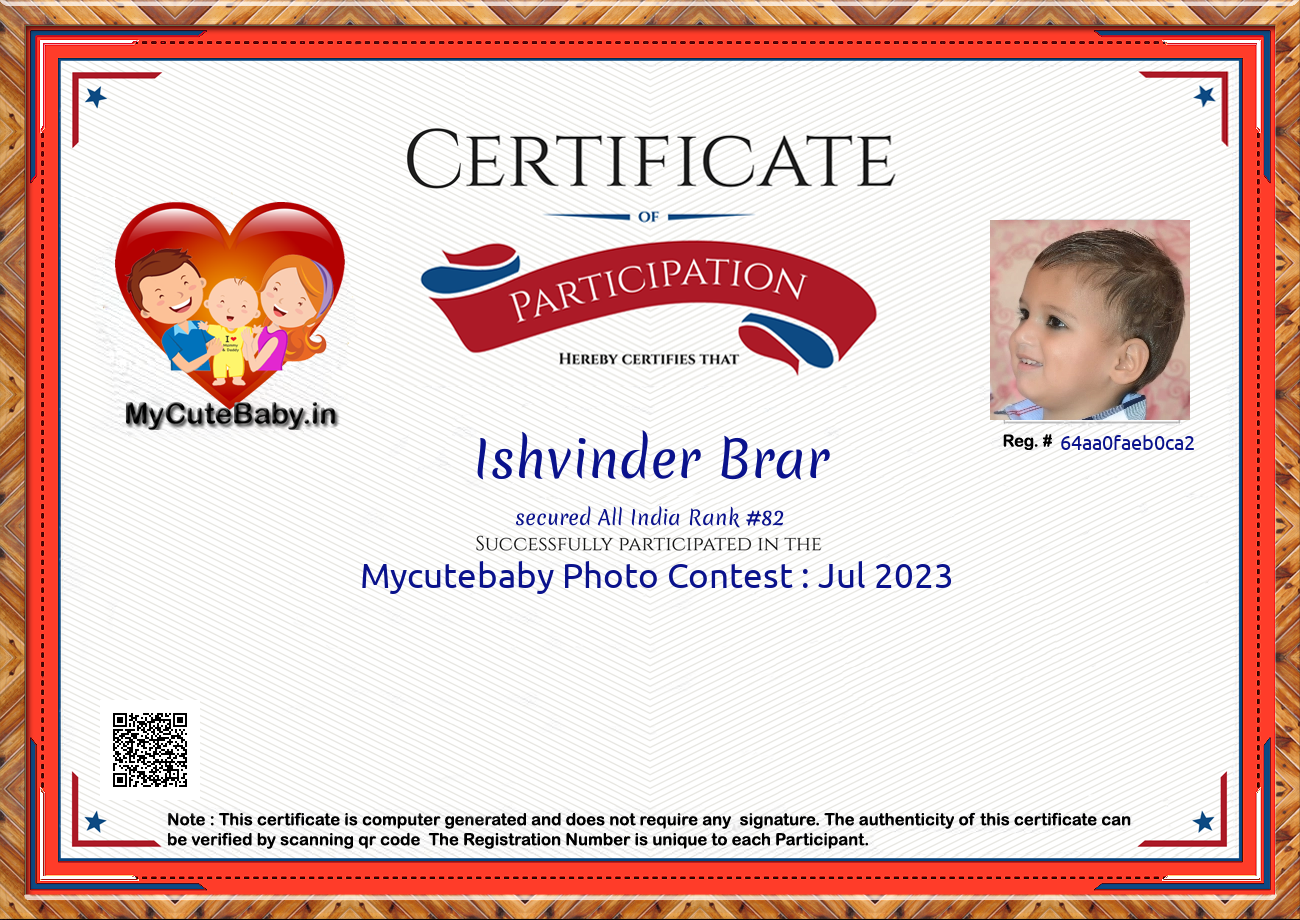 Participation certificate for all the participants whose mycutebaby votes are more than 1000.