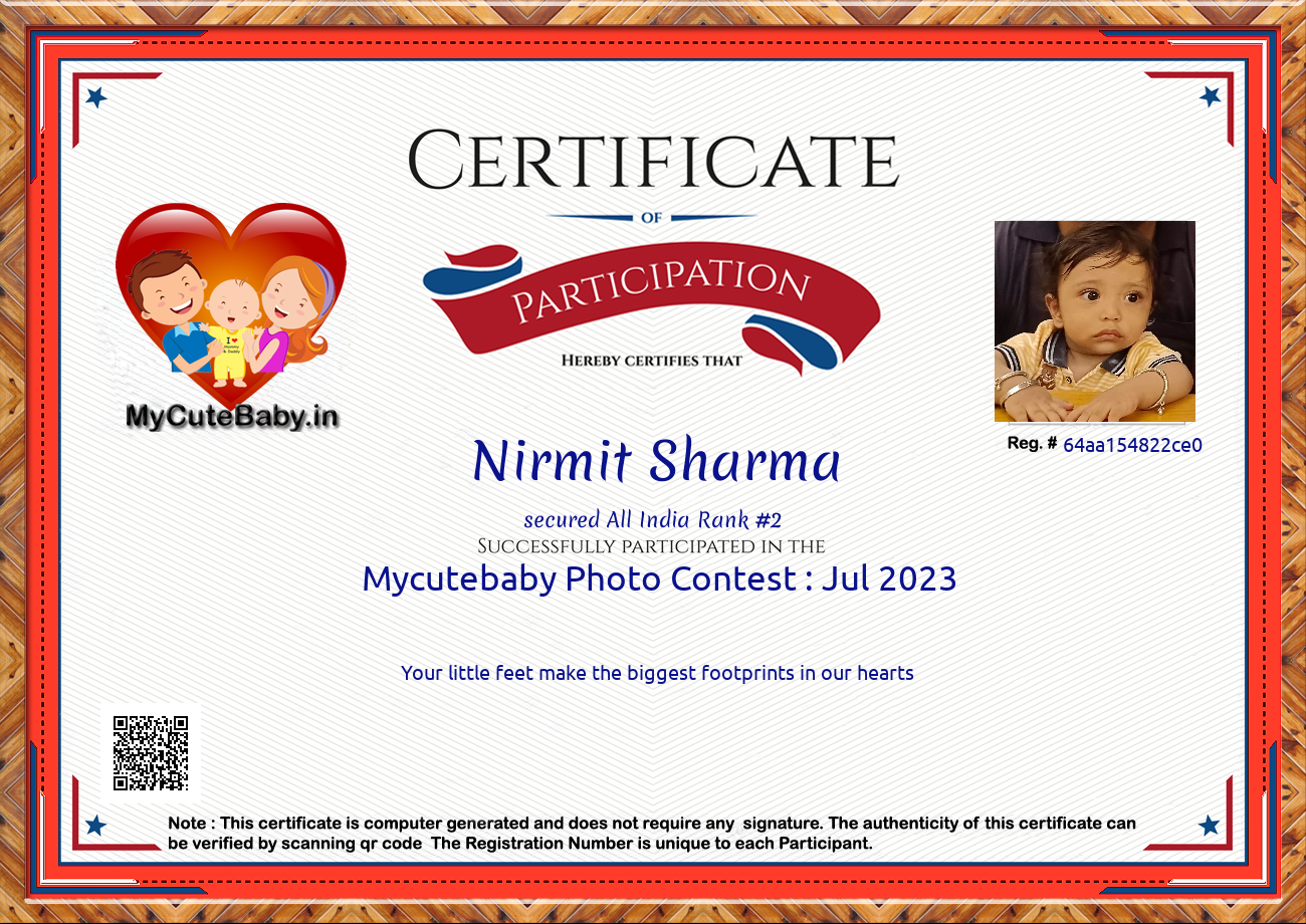 MyCuteBaby is India's most trusted and oldest baby photo contest with best voting securities & transparency system. MyCuteBaby has been organizing monthly contests since February 2017 and has declared 10,700 winners across 107 monthly contests from February 2017 to December 2025 .Enter your baby's photo today for a chance to win and be featured in our gift hamper gallery for the month of January 2026! For detailed prize information, click on the 'Prizes' button to view the prize details of each and every monthly contest.