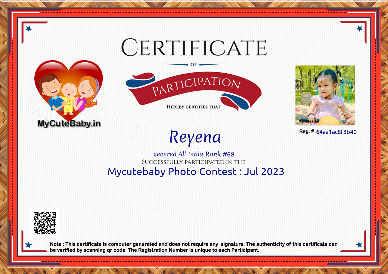 Participation certificate for all the participants whose mycutebaby votes are more than 1000.