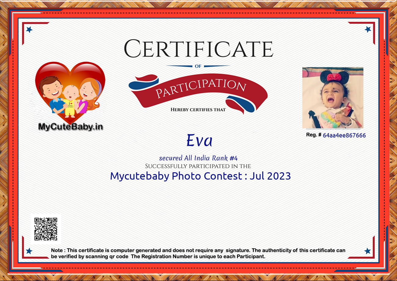 Participation certificate for all the participants whose mycutebaby votes are more than 1000.