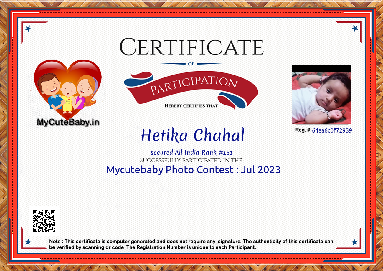 Participation certificate for all the participants whose mycutebaby votes are more than 1000.