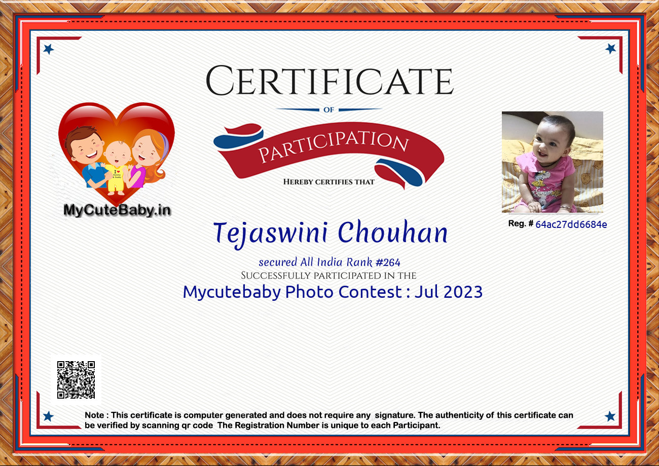Participation certificate for all the participants whose mycutebaby votes are more than 1000.