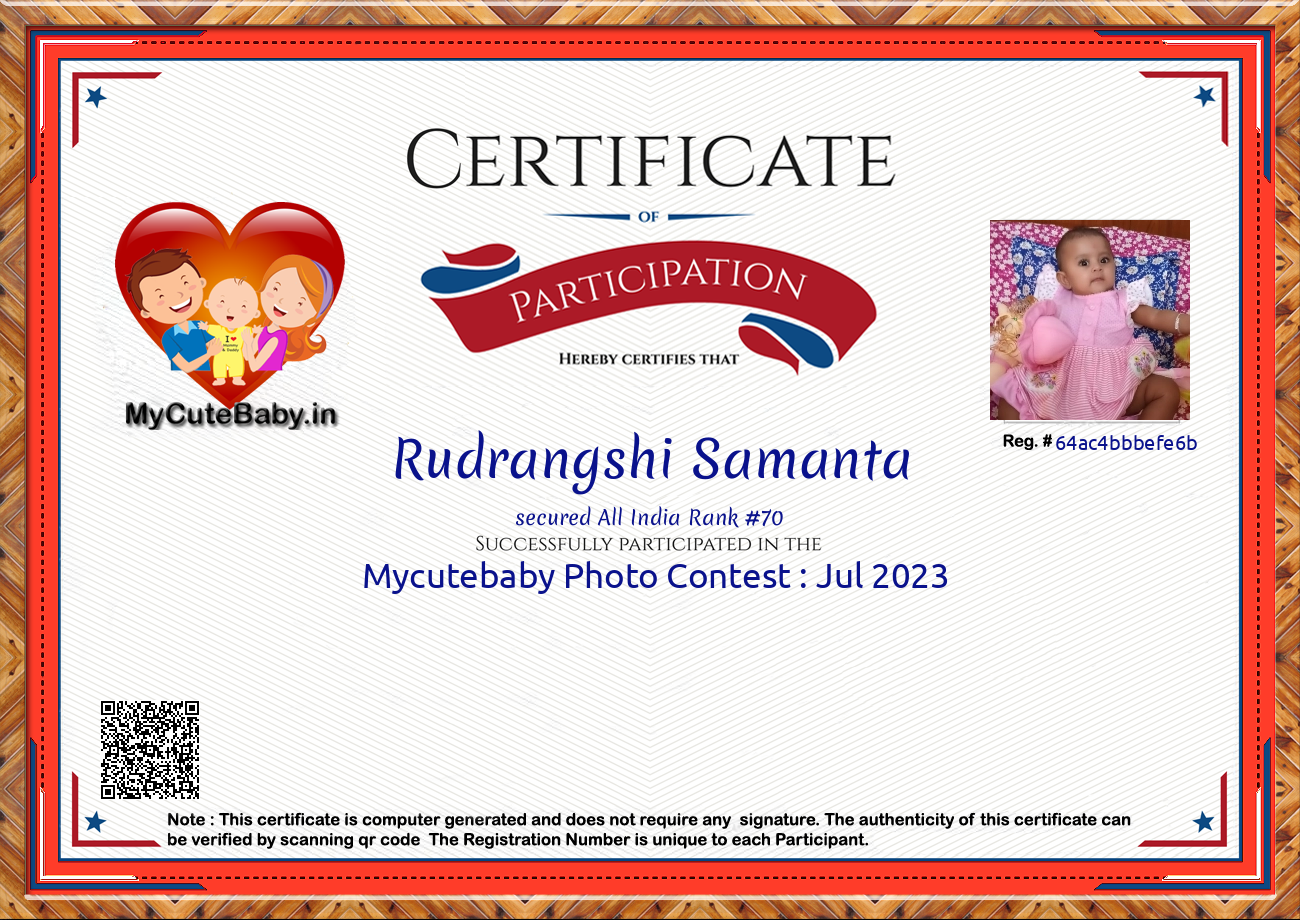Participation certificate for all the participants whose mycutebaby votes are more than 1000.