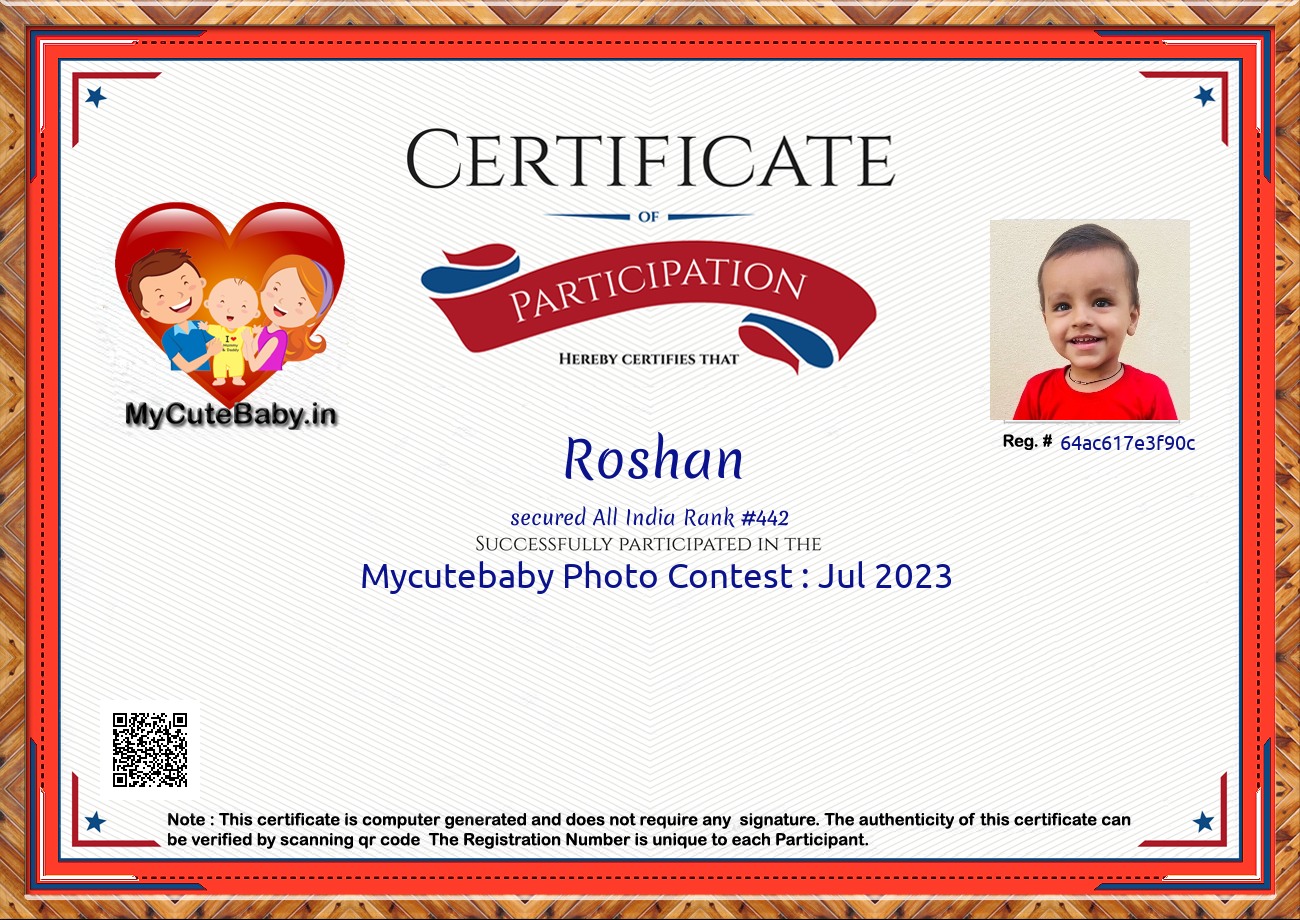 Participation certificate for all the participants whose mycutebaby votes are more than 1000.