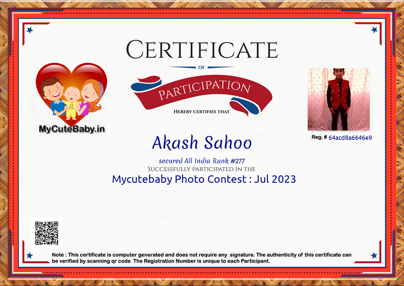 Participation certificate for all the participants whose mycutebaby votes are more than 1000.