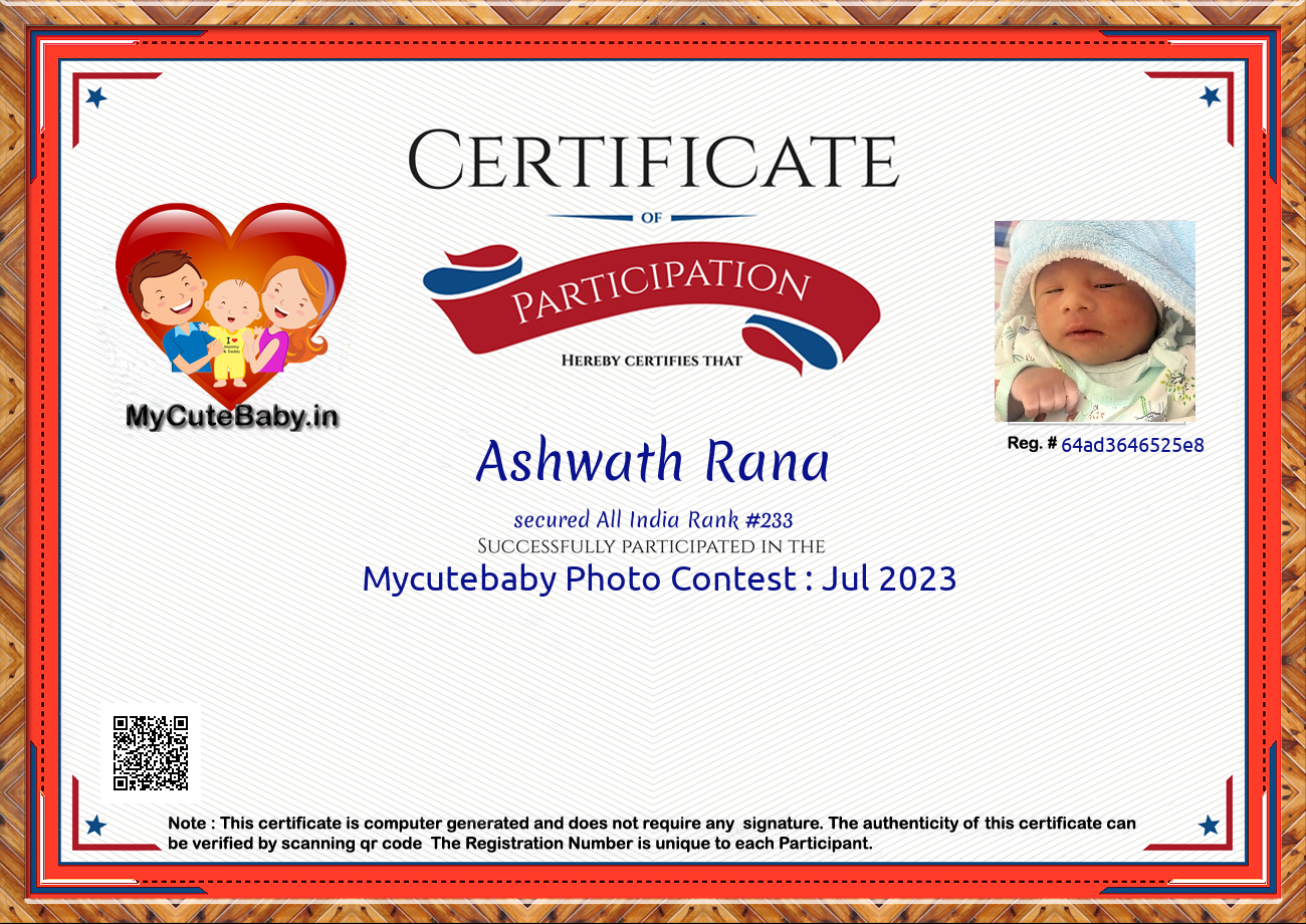 Participation certificate for all the participants whose mycutebaby votes are more than 1000.