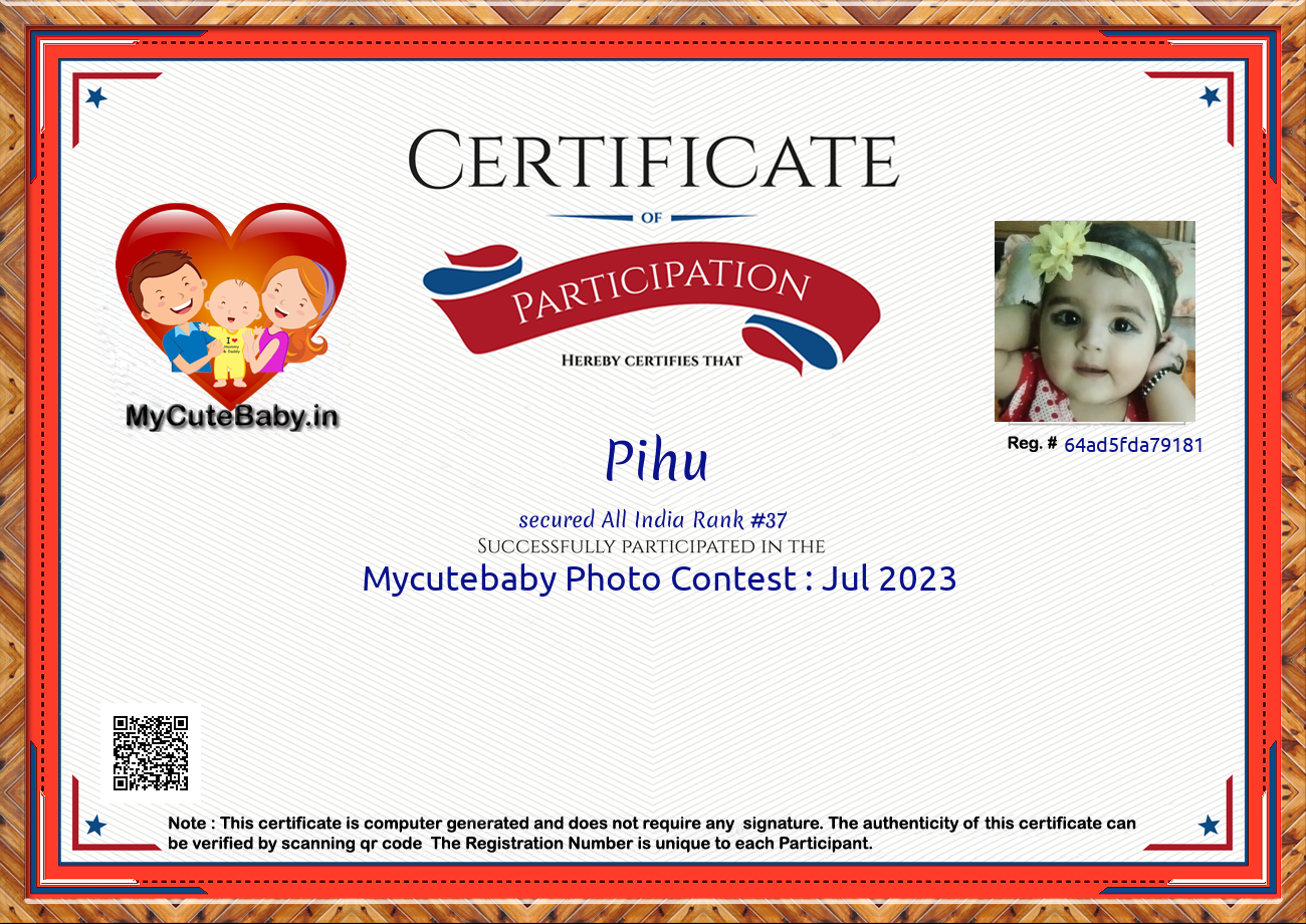 Participation certificate for all the participants whose mycutebaby votes are more than 1000.
