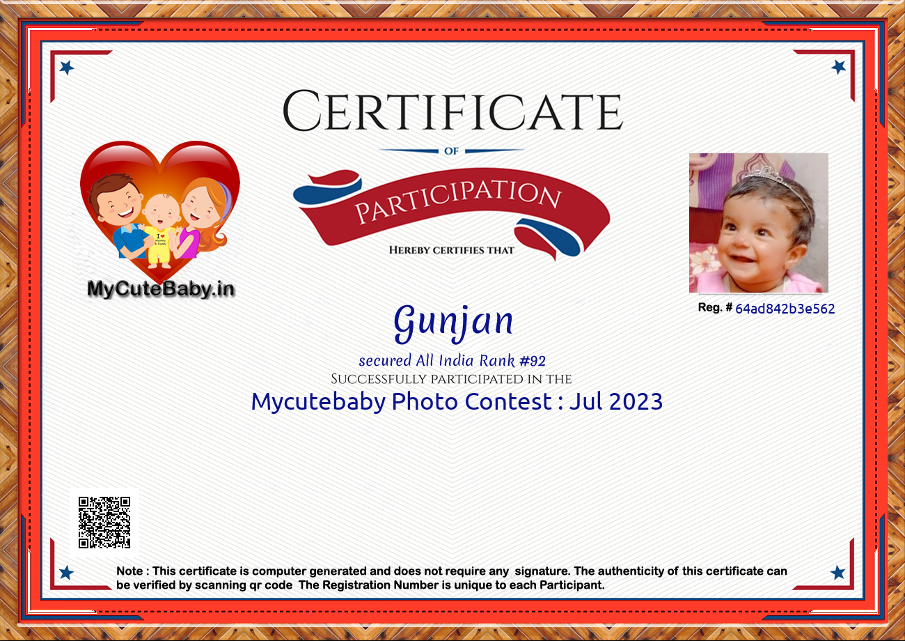 Participation certificate for all the participants whose mycutebaby votes are more than 1000.