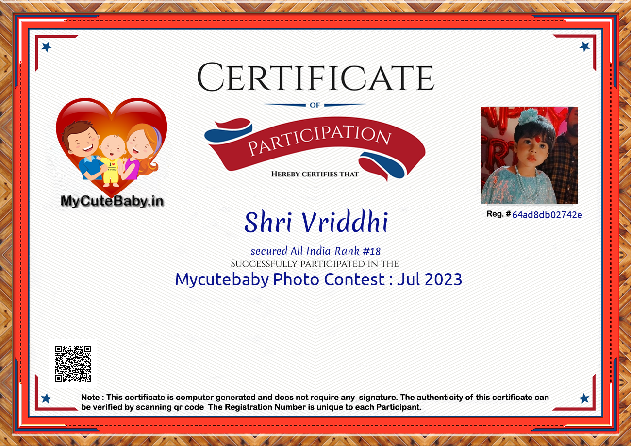 Participation certificate for all the participants whose mycutebaby votes are more than 1000.