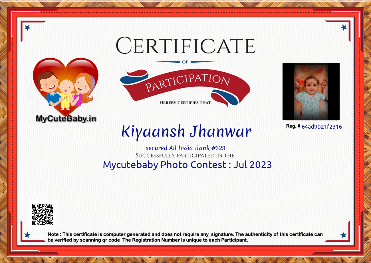 Participation certificate for all the participants whose mycutebaby votes are more than 1000.