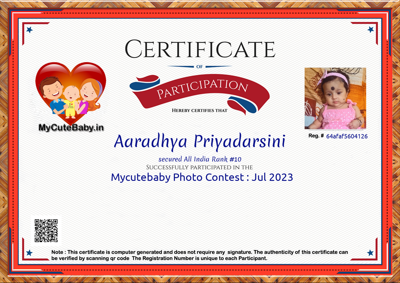 Participation certificate for all the participants whose mycutebaby votes are more than 1000.