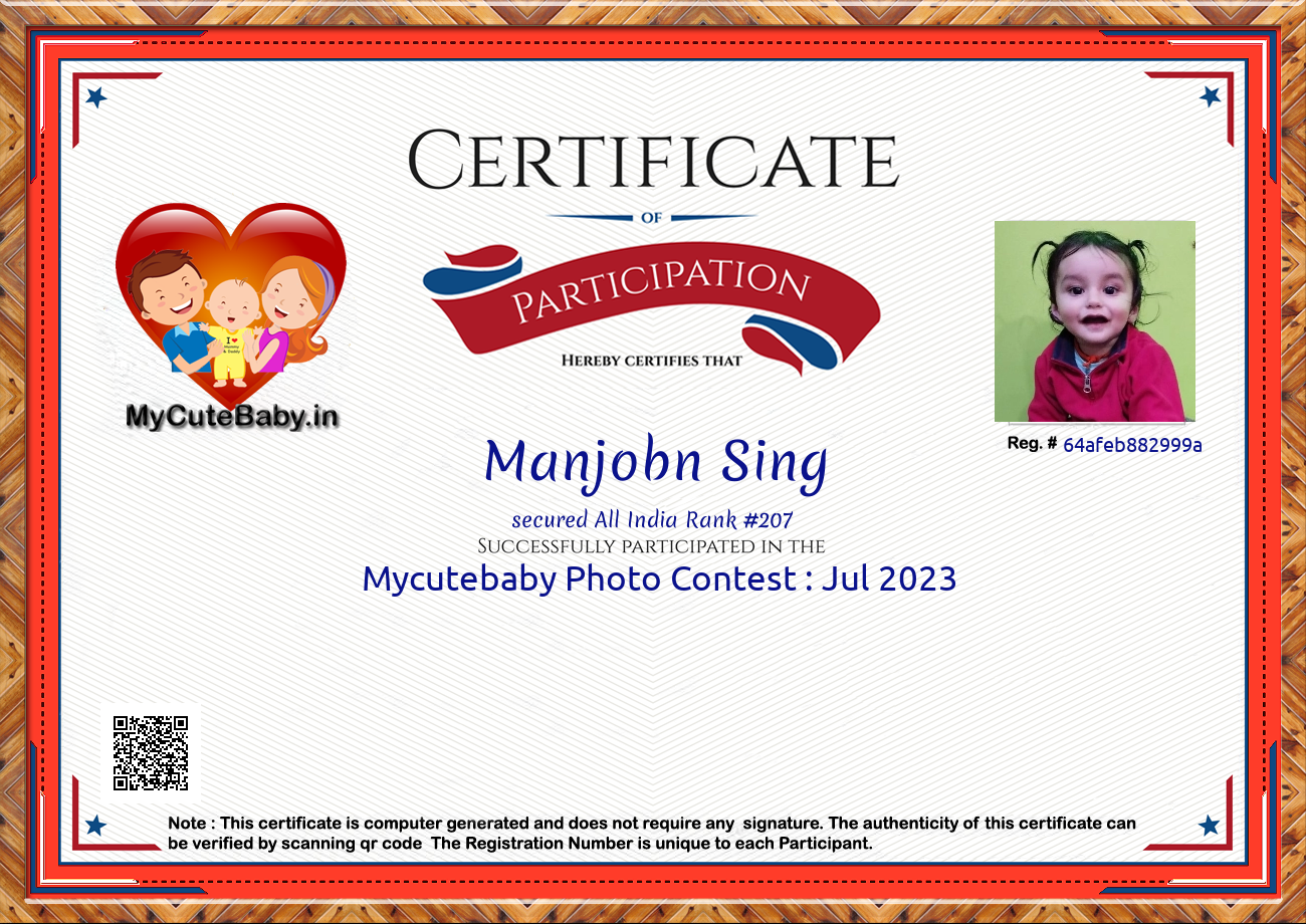 Participation certificate for all the participants whose mycutebaby votes are more than 1000.