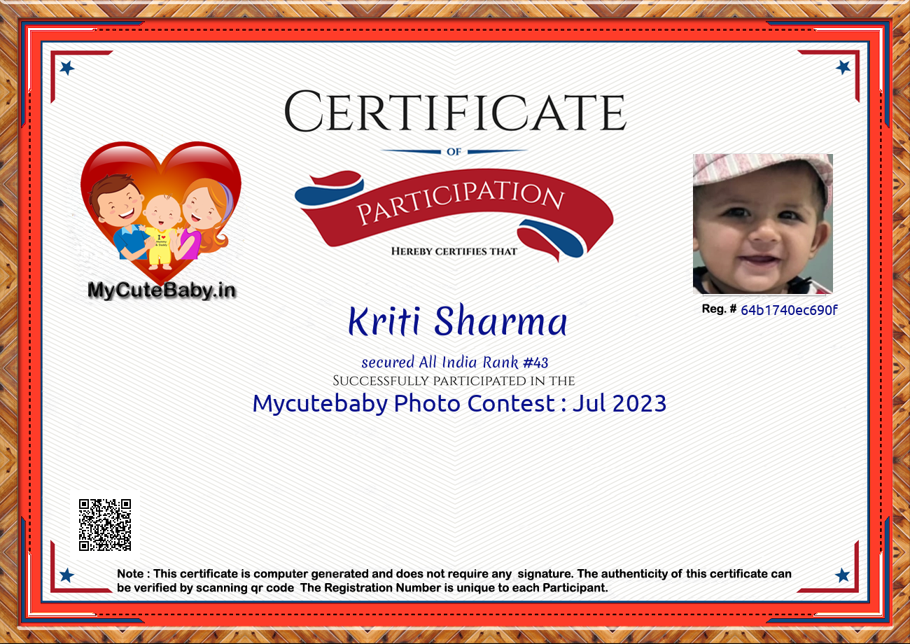 Participation certificate for all the participants whose mycutebaby votes are more than 1000.