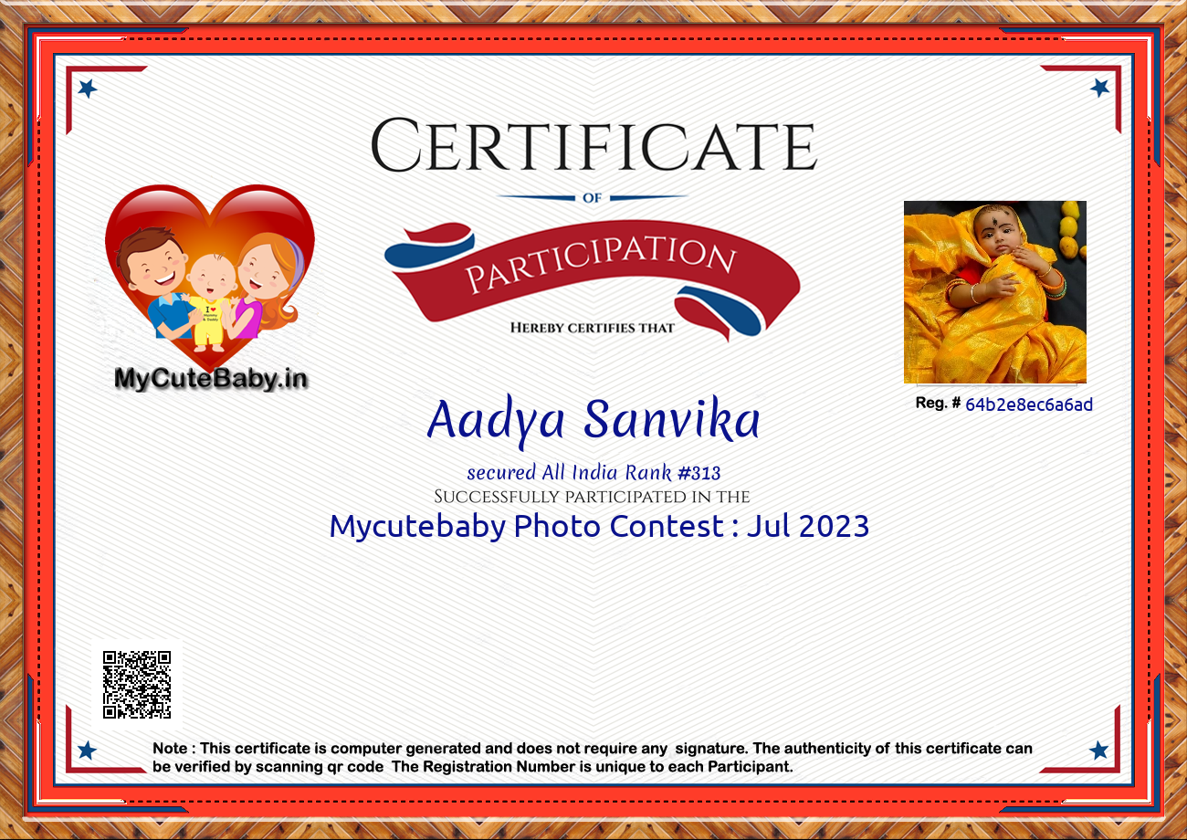 Participation certificate for all the participants whose mycutebaby votes are more than 1000.