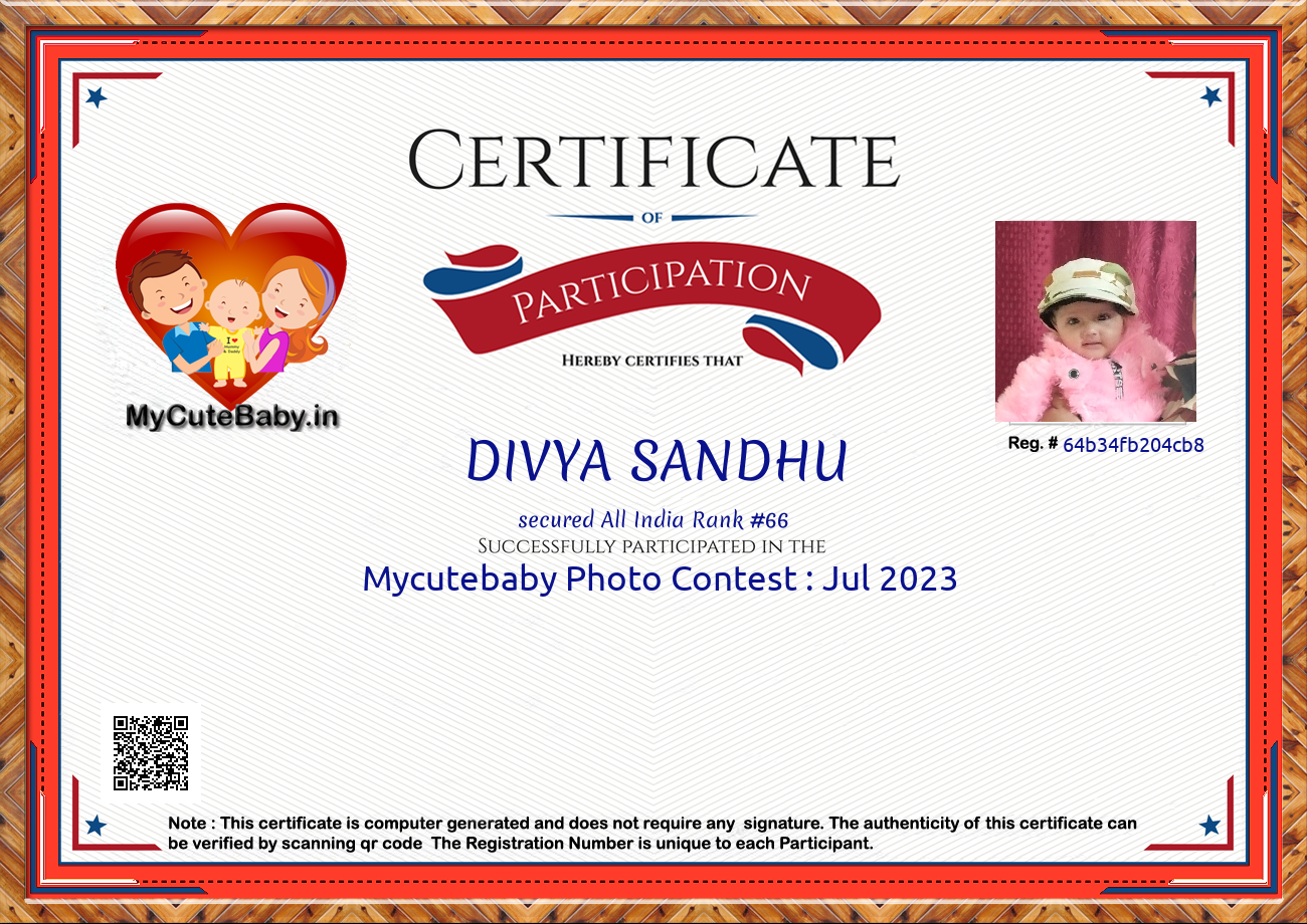 Participation certificate for all the participants whose mycutebaby votes are more than 1000.