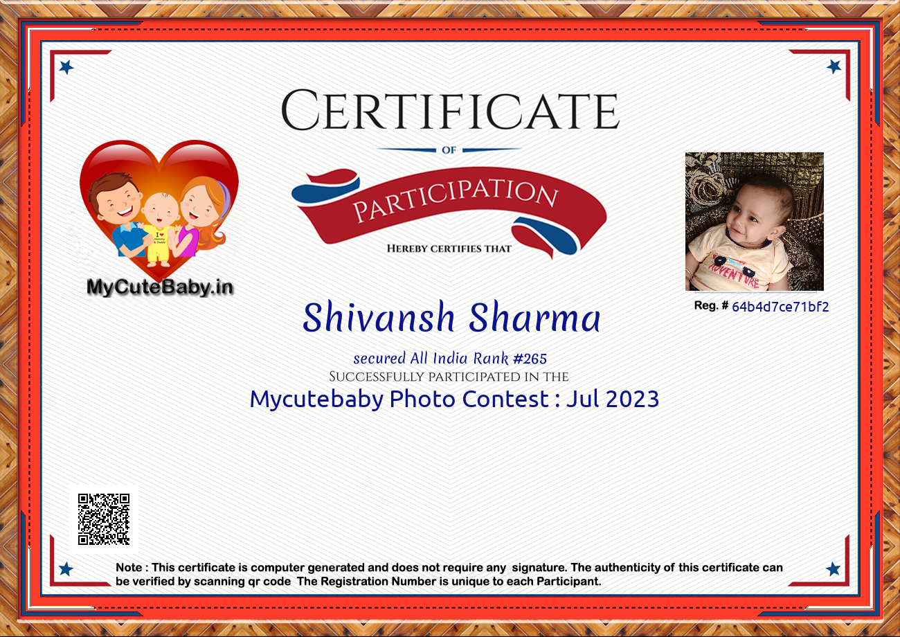 Participation certificate for all the participants whose mycutebaby votes are more than 1000.