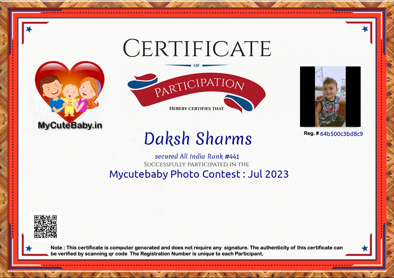Participation certificate for all the participants whose mycutebaby votes are more than 1000.