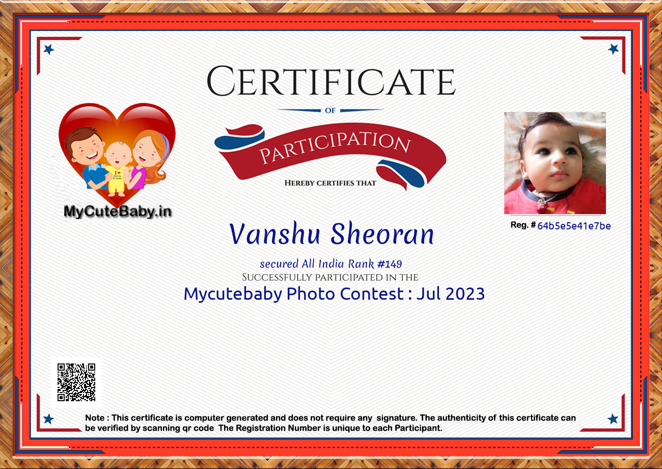 Participation certificate for all the participants whose mycutebaby votes are more than 1000.