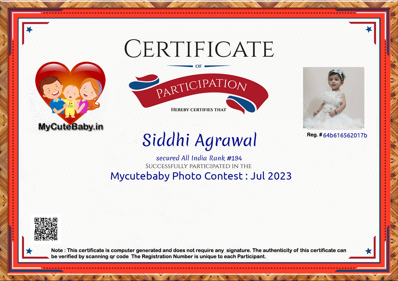 Participation certificate for all the participants whose mycutebaby votes are more than 1000.