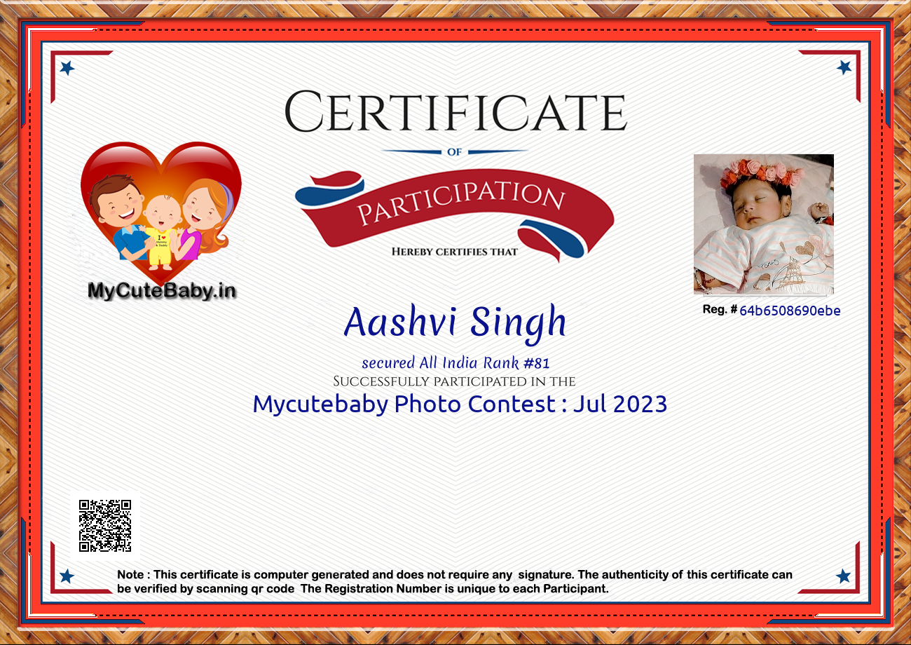 Participation certificate for all the participants whose mycutebaby votes are more than 1000.