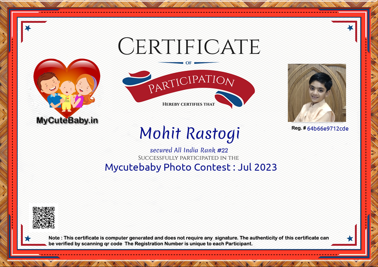 Participation certificate for all the participants whose mycutebaby votes are more than 1000.