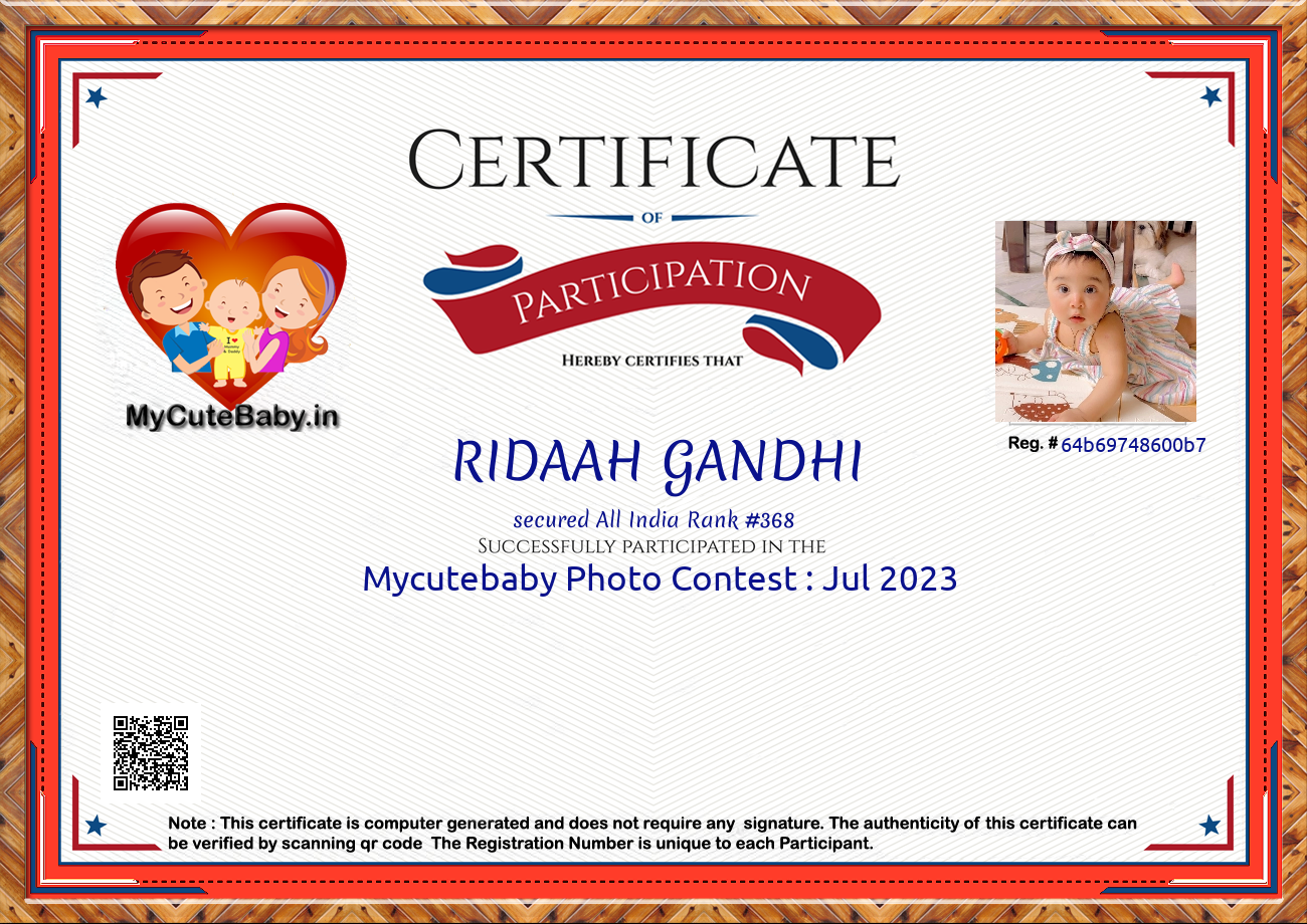 Participation certificate for all the participants whose mycutebaby votes are more than 1000.