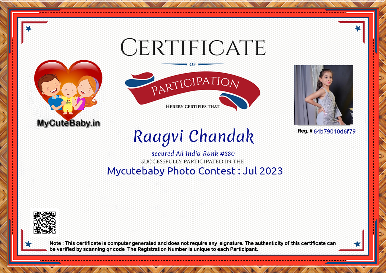 Participation certificate for all the participants whose mycutebaby votes are more than 1000.