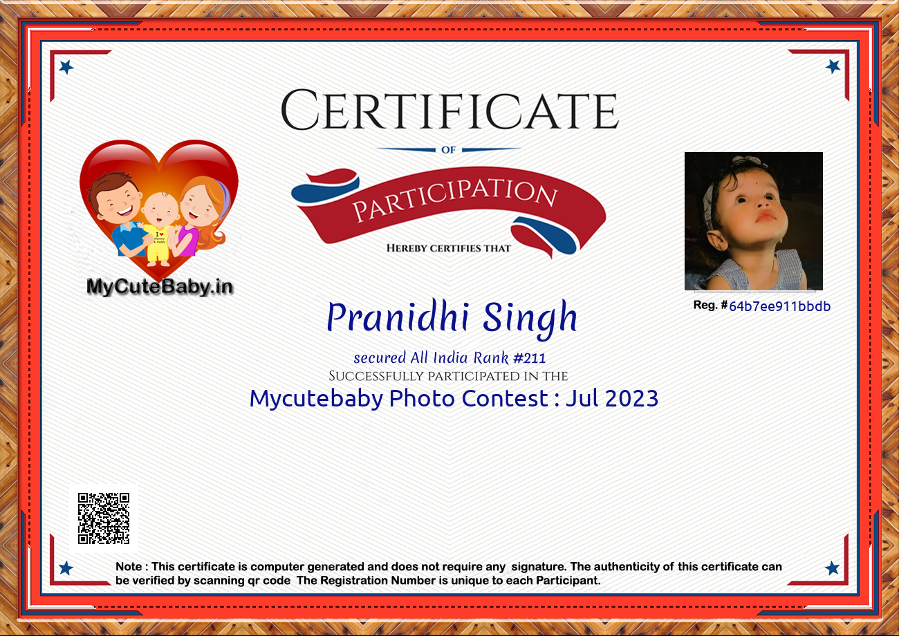Participation certificate for all the participants whose mycutebaby votes are more than 1000.