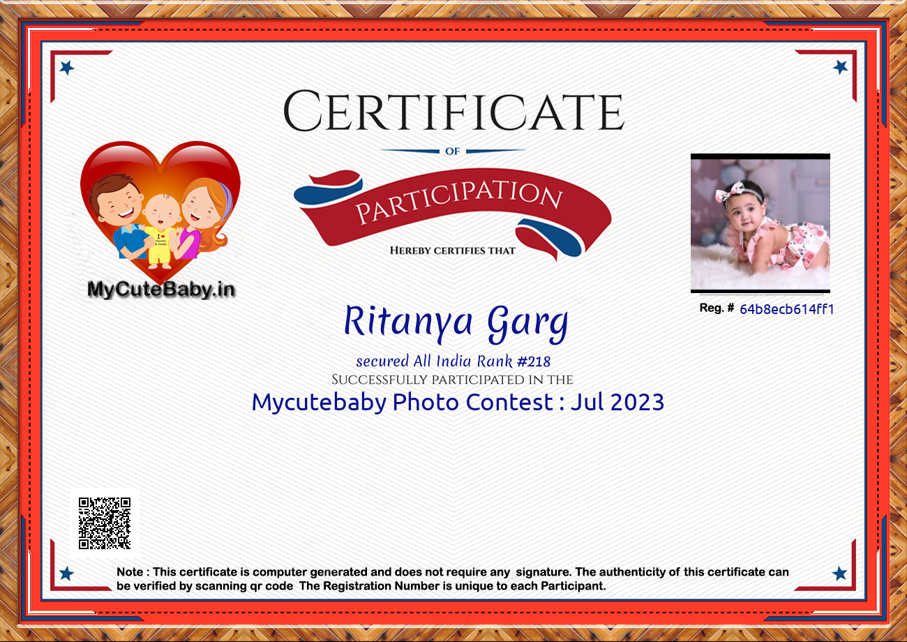 Participation certificate for all the participants whose mycutebaby votes are more than 1000.