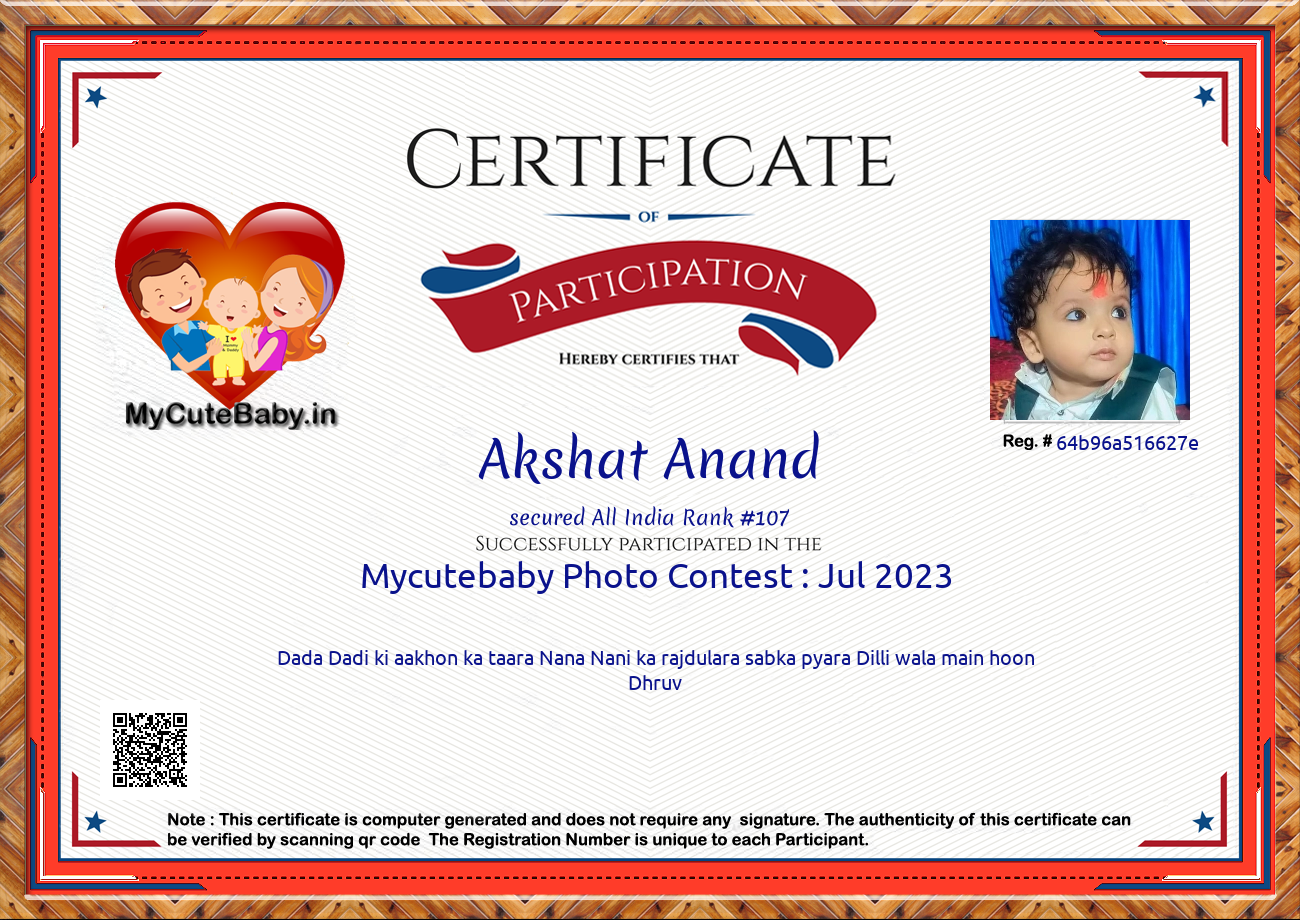 Participation certificate for all the participants whose mycutebaby votes are more than 1000.
