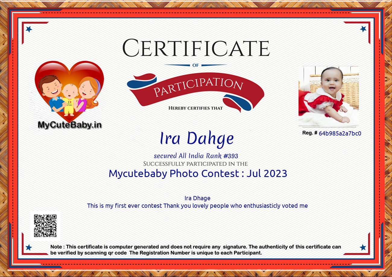 Participation certificate for all the participants whose mycutebaby votes are more than 1000.