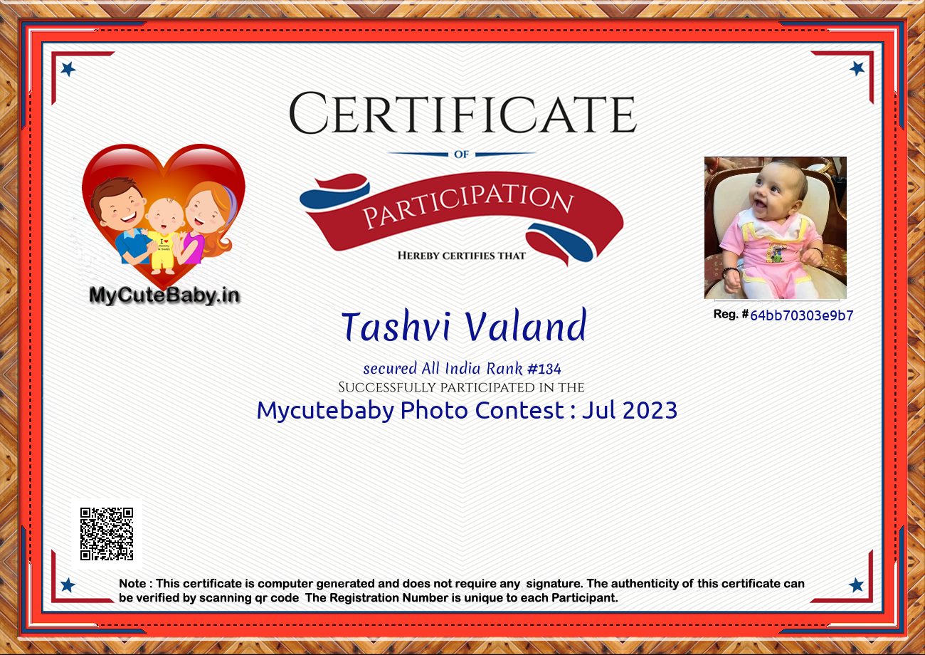 Participation certificate for all the participants whose mycutebaby votes are more than 1000.